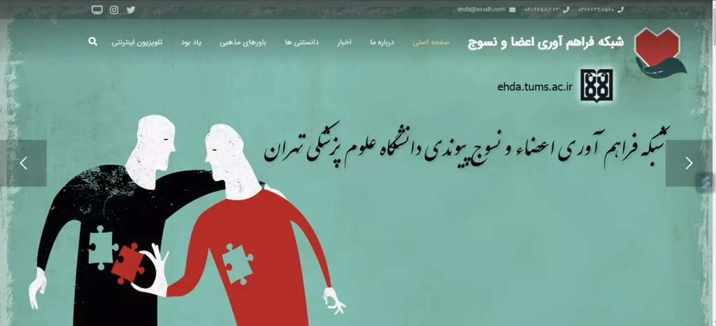 اهدای عضو : شبکه فراهم آوری اعضا و نسوج دانشگاه علوم پزشکی تهران